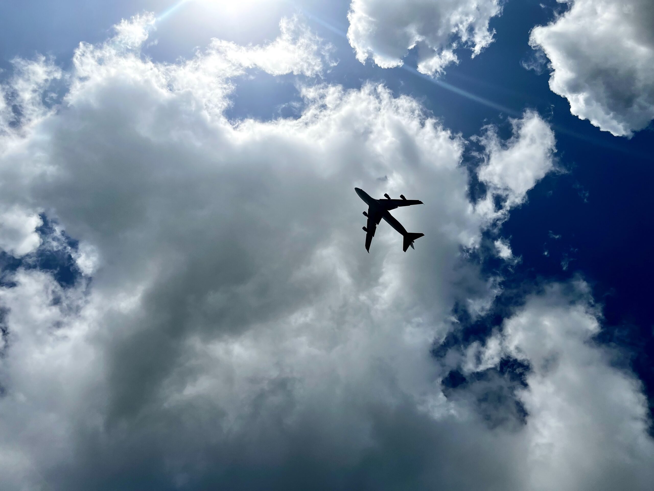 外を散歩していると上空に飛行機がきたので下から写真をパシャリ。