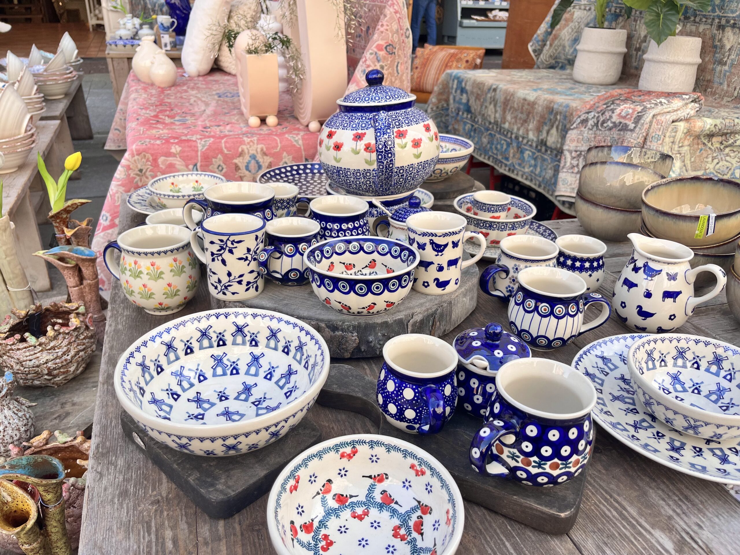 ポーランド食器もある陶器屋さんは見ているだけで楽しいです。